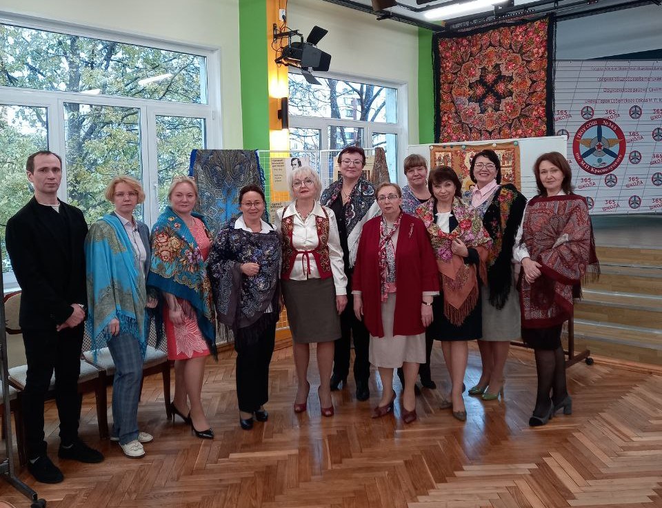 60 учителей разных образовательных областей из 20 школ Фрунзенского и Петродворцового районов Санкт-Петербурга вместе с учащимися 9-х классов ГБОУ СОШ № 365 и ученицами педагогического класса ГБОУ СОШ № 313 занимались русским языком, историей, литературой, технологией, биологией, математикой, музыкой (участники мероприятия объединились в хоровод; народный танец под инструментальный наигрыш укрепил неразрывную связь жизни человека с русской культурой); создавали узоры павловопосадских платков, занимались макраме. Участники конференции знакомились с уникальной методикой дня построения целостного знания, где интегрирующая идея методики – развитие речи обучающихся. Постоянно осуществлялся переход мышления учащихся от образного к понятийному, от словесного описания ощущений и ассоциаций к понятиям. Деятельность каждого участника была мотивирована и разнообразна. Работая индивидуально и в группах, присутствующие педагоги и учащиеся с увлечением рисовали, маркировали тексты, формулировали главную мысль, решали математические задачи, строили коллективное суждение, водили хороводы, создавали русские сувениры, выдвигали гипотезы с последующей аргументацией и социализацией. Итоговым продуктом дня стал текст, который не только отразил полученные знания, но и выразил творческий потенциал участников конференции, уровень их заинтересованности. Плавные переходы Плавные переходы от леса к степи, от народного творчества к искусству рождаются уникальными качествами русской души и русского сознания. Содружество, слияние человеческого и природного миров раскрывают необъятные просторы для фантазии. Взглянем на павловопосадские платки. Цветы на них «пустились в хоровод», будто всё остальное на свете погрузилось в сон. Ассоциации возникают в воображении постепенно, но не без ритма. Поля цветов – это мощь и сила, воспетая русскими людьми. Видя калейдоскоп красок, чувствуешь аромат луга, благоухание трав, русское раздолье. Возникает ощущение гармонии от соприкосновения человека и природы. Значит, Россия, Родина – это умиротворение и непреклонность, это противостояние горькой судьбе. (Тюленева Станислава, учащаяся 9б класса ГБОУ СОШ № 365). Родина Есть много государств хороших, Но всё же русская земля Красивей всех и всех пригоже. Её леса, моря, поля Идут от запада к востоку, Своим величьем поражая. Традиций древних здесь истоки И слава «лютых сеч» большая… Но каждый россиянин знает: Добро в России победит! (Креславский Денис, учащийся 9 «Б» класса ГБОУ СОШ №365) Любовь к Родине Мне кажется, что человечность проявляется в любви. В любви к ближнему, к семье и, конечно, к Родине. Любовь к Родине выражается в уважении к традициям, истории, культуре родной страны, в стремлении сделать Матушку Россию лучше. Как же велика наша земля, земля святорусская! Ты можешь представить Родину, взглянув на павловопосадские платки, которые хранят великий культурный код. Символичные цвета, сложно выстроенные узоры, золотые руки мастериц – это произведения русского искусства, одухотворённые безграничной любовью к Родине! (Керейник Владислав, учащийся 9 «А» класса ГБОУ СОШ № 365)